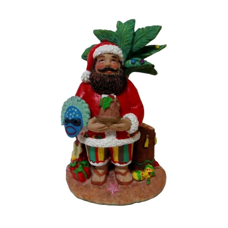 This charming Santa figurine measures 4.5" tall and is in good overall condition. It's made of hand painted resin with a maker mark on the bottom. Includes box