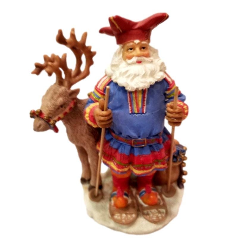 This charming Santa figurine measures 5" tall and is in good overall condition. It's made of hand painted resin with a maker mark on the bottom. No box.