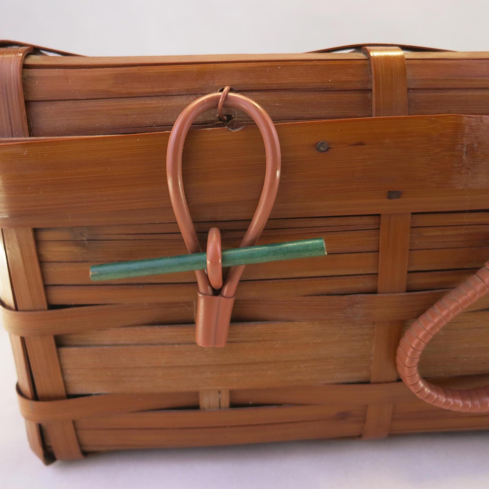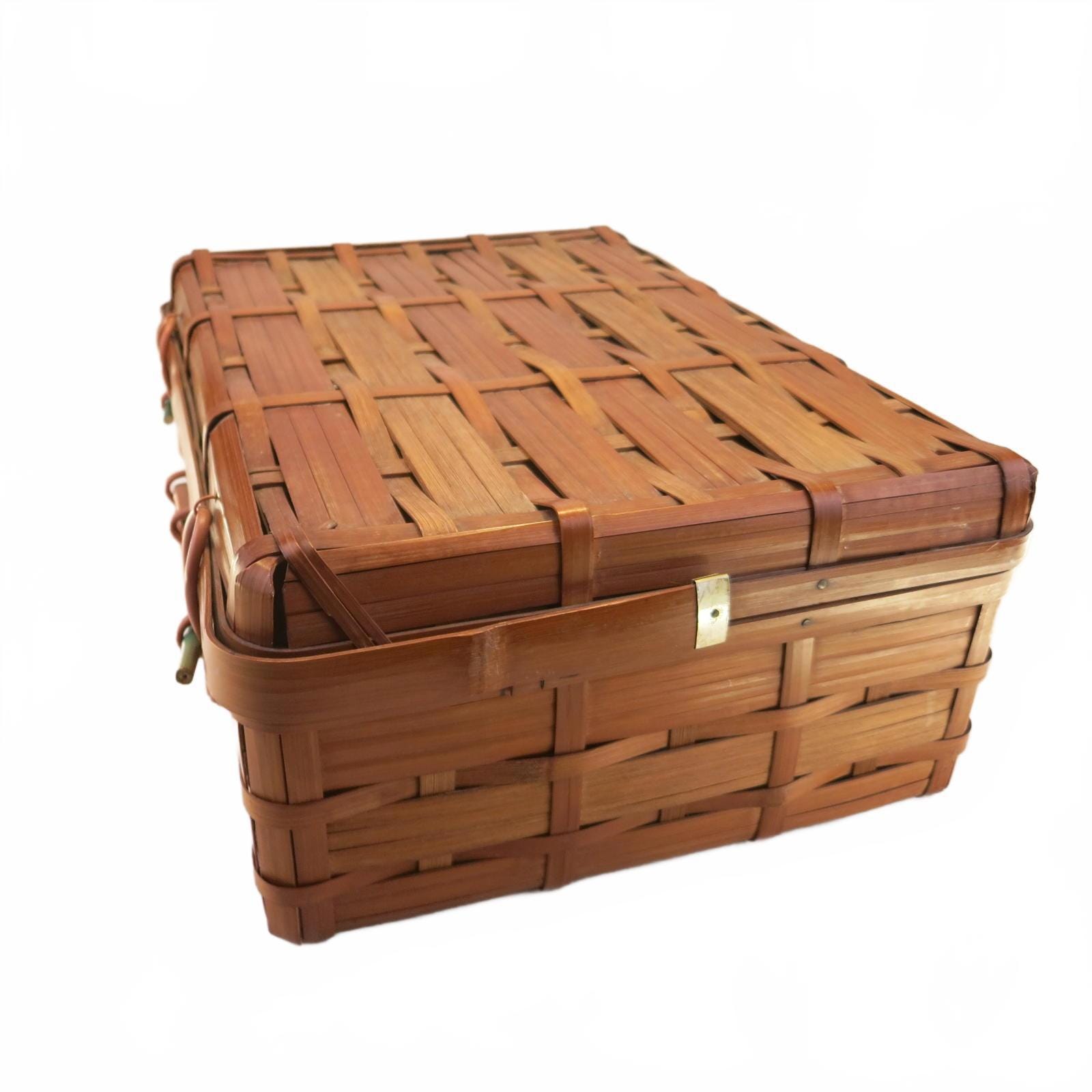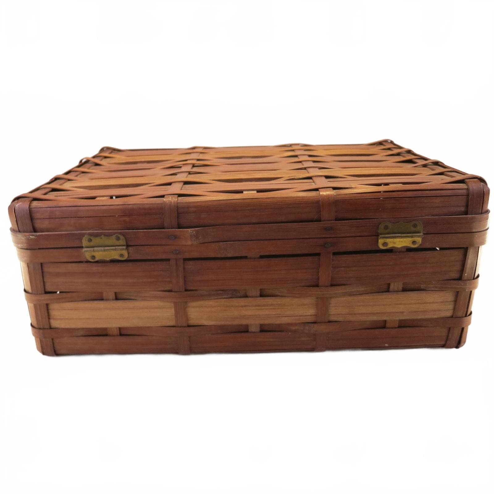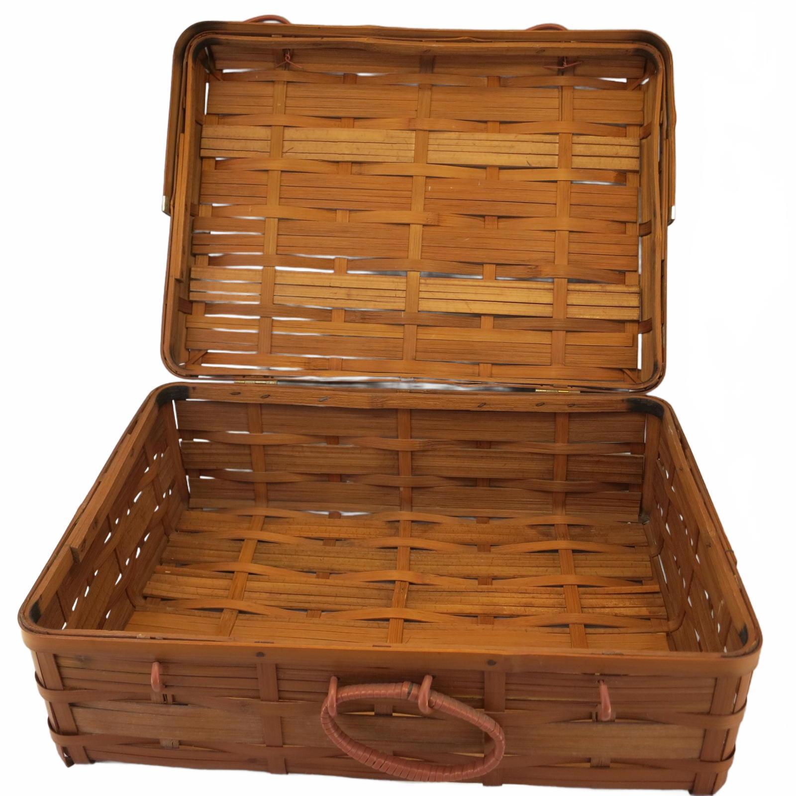 Nifty woven case for storage, picnics, or just to display. Case is unlined. About 15" x 10" x 5". In very good vintage condition.