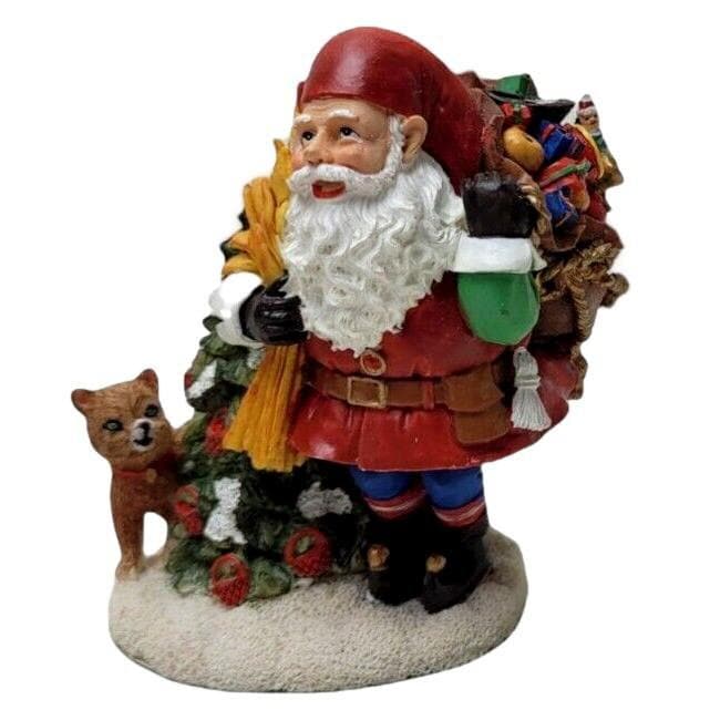 This charming Santa figurine measures 4.5" tall and is in good overall condition. It's made of hand painted resin with a maker mark on the bottom. Includes box.