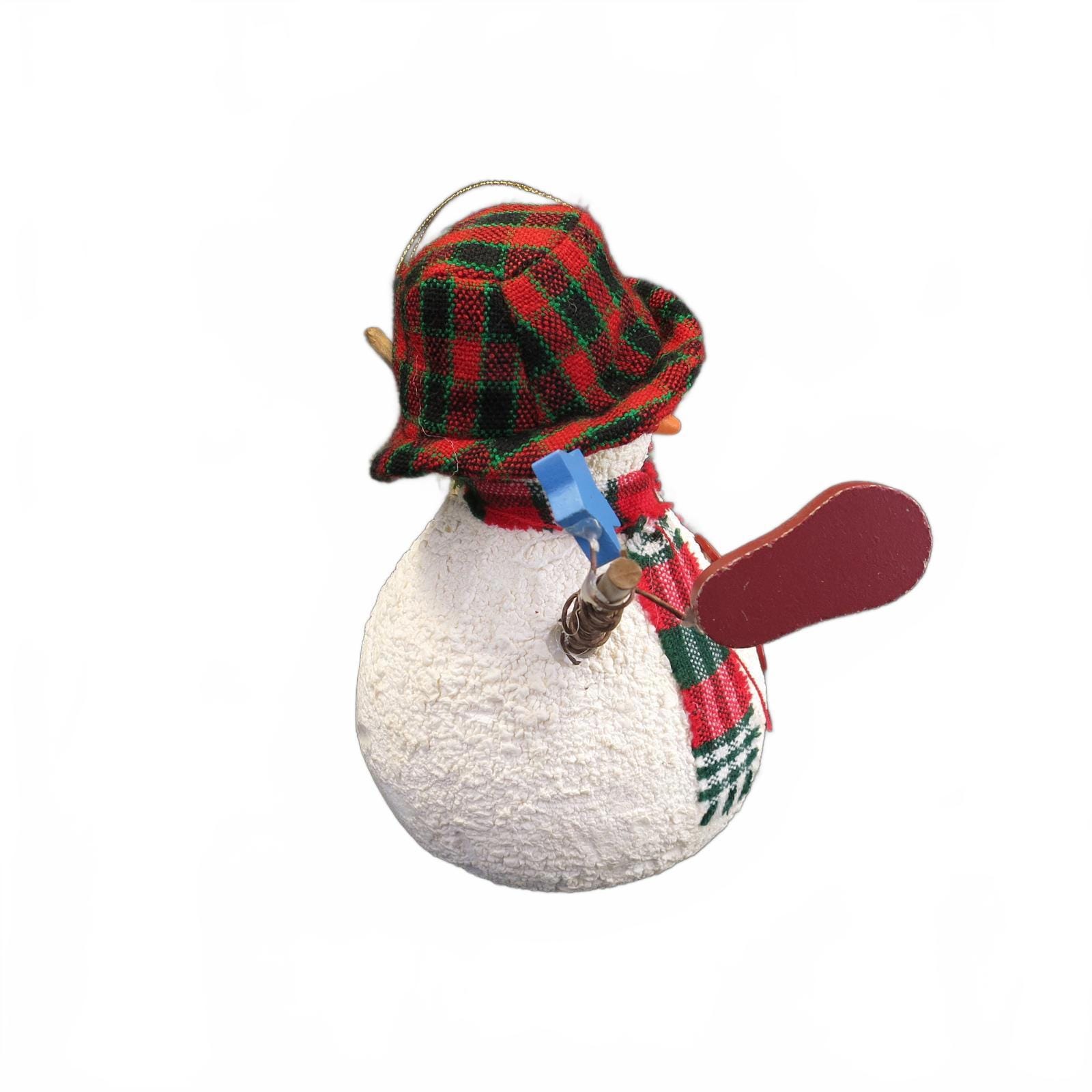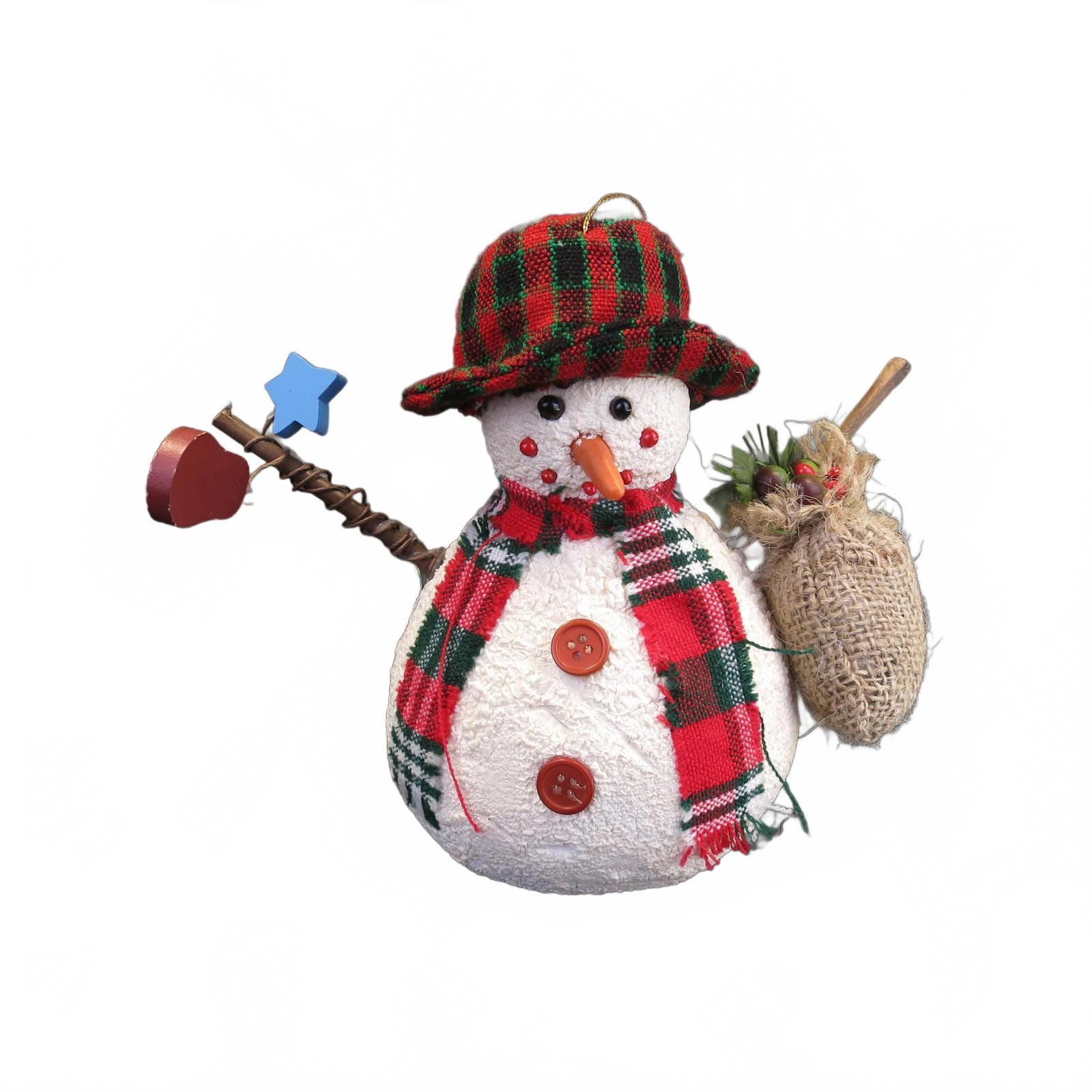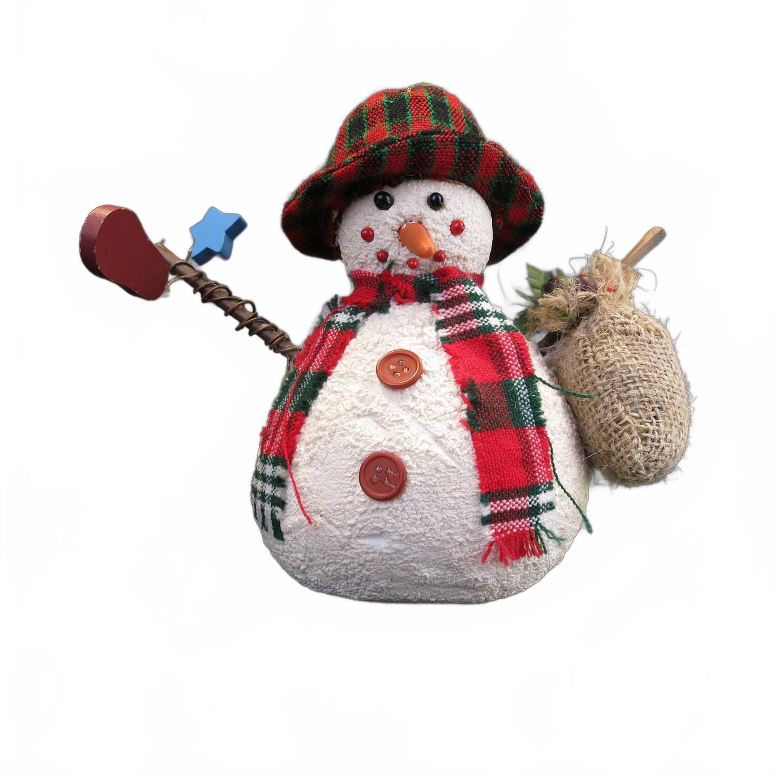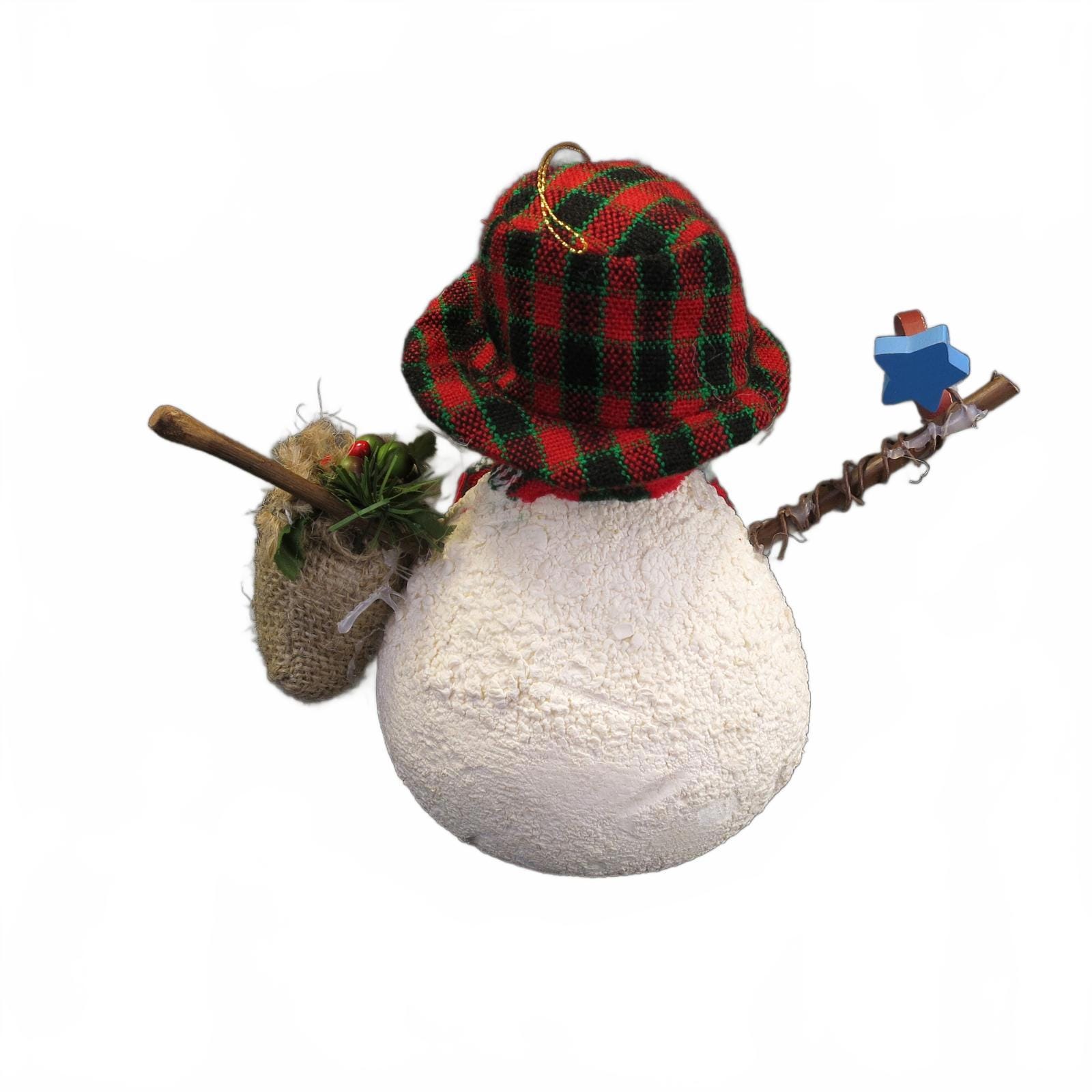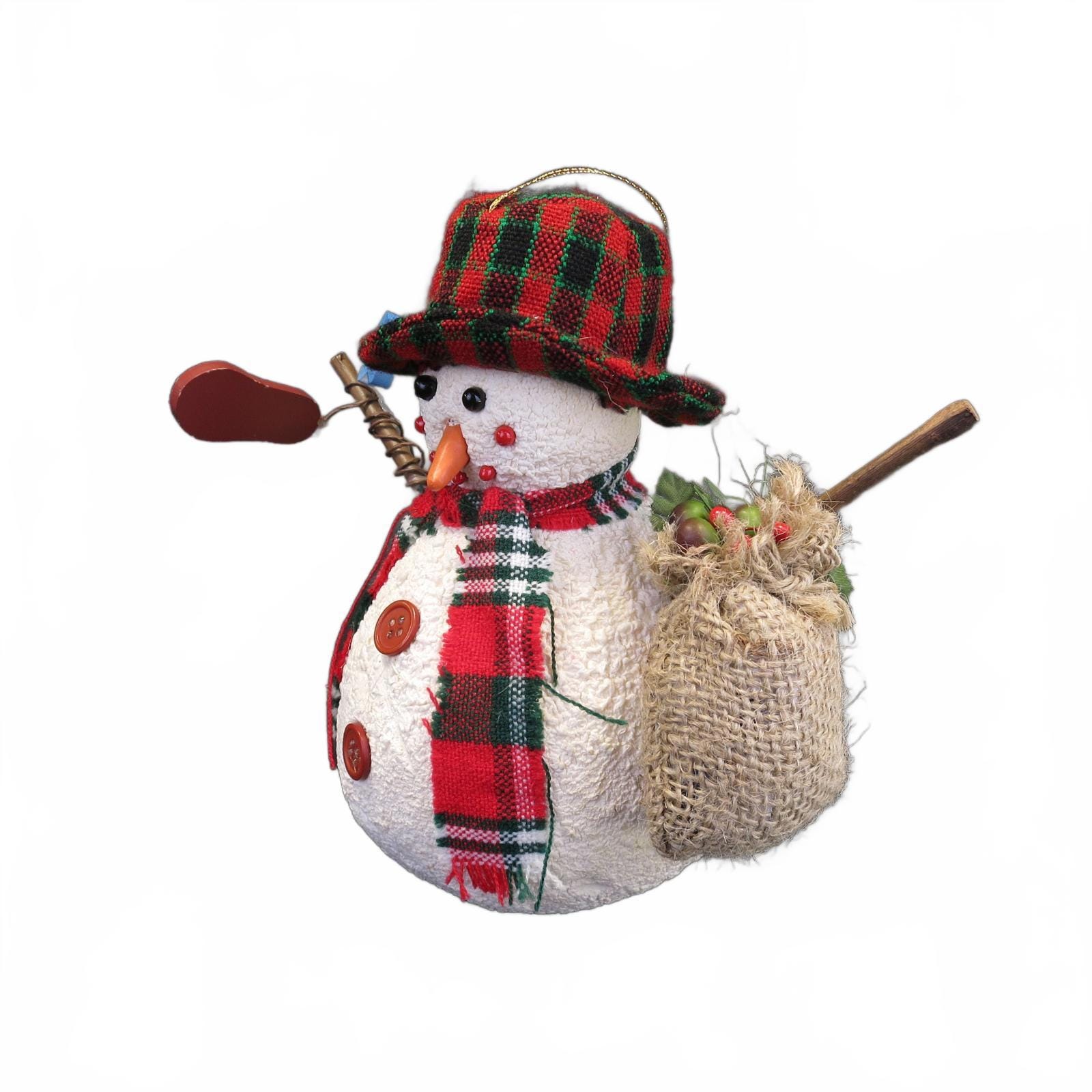 This groovy snowman figurine was made in 90's & It's in good overall condition. He's sporting a scarf, cloth coat, & wood accents 7.25" tall & made of lightweight carved foam. Can hang or sit.