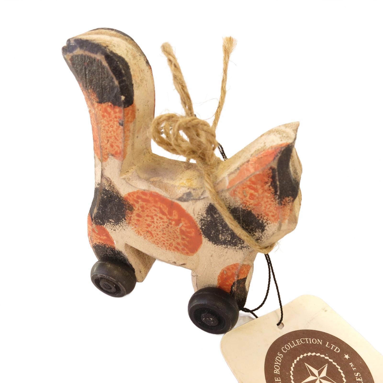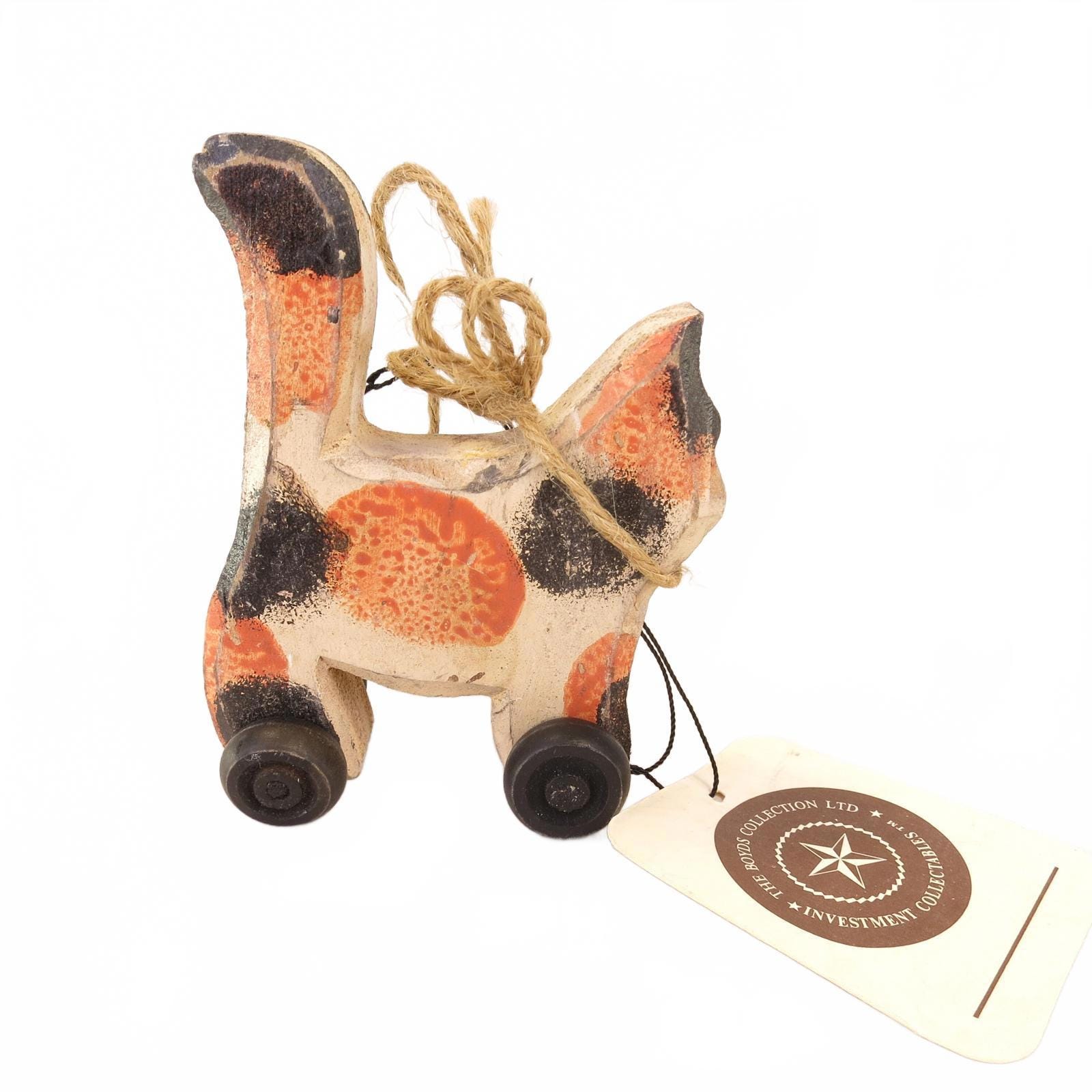 Boyd's Bears Wheelie Cat Wood Block Pull Toy 4" Vintage with Original Tag