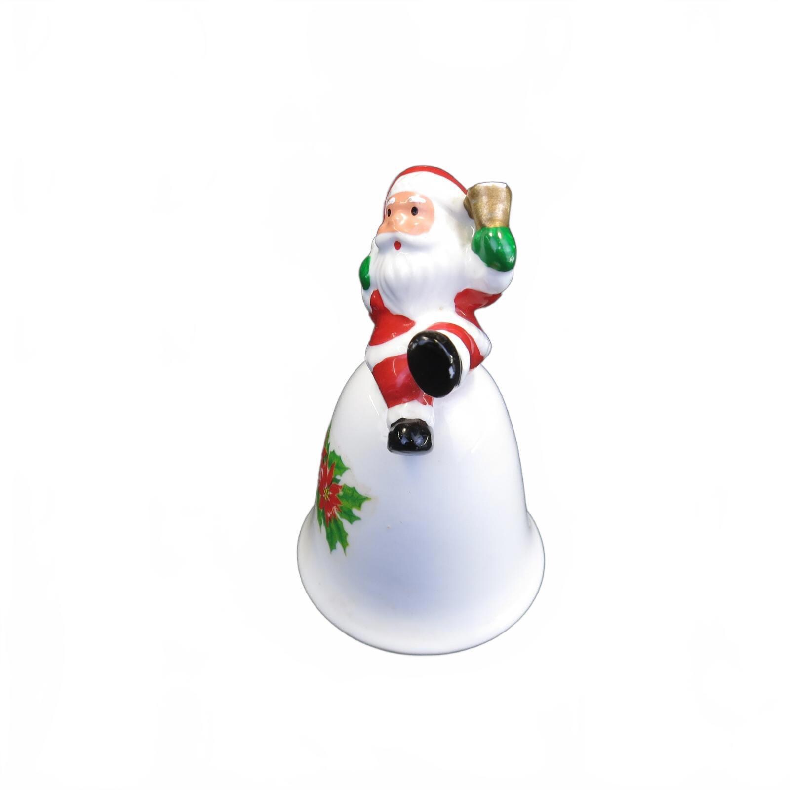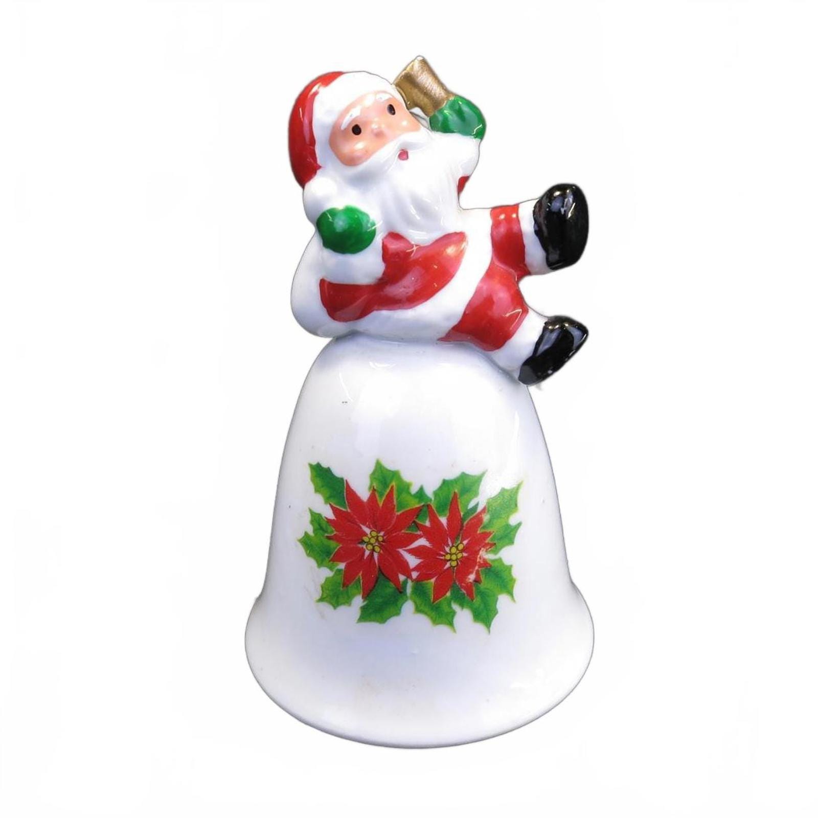 This charming vintage, ceramic bell features Santa Claus on the top and poinsettia on the front.