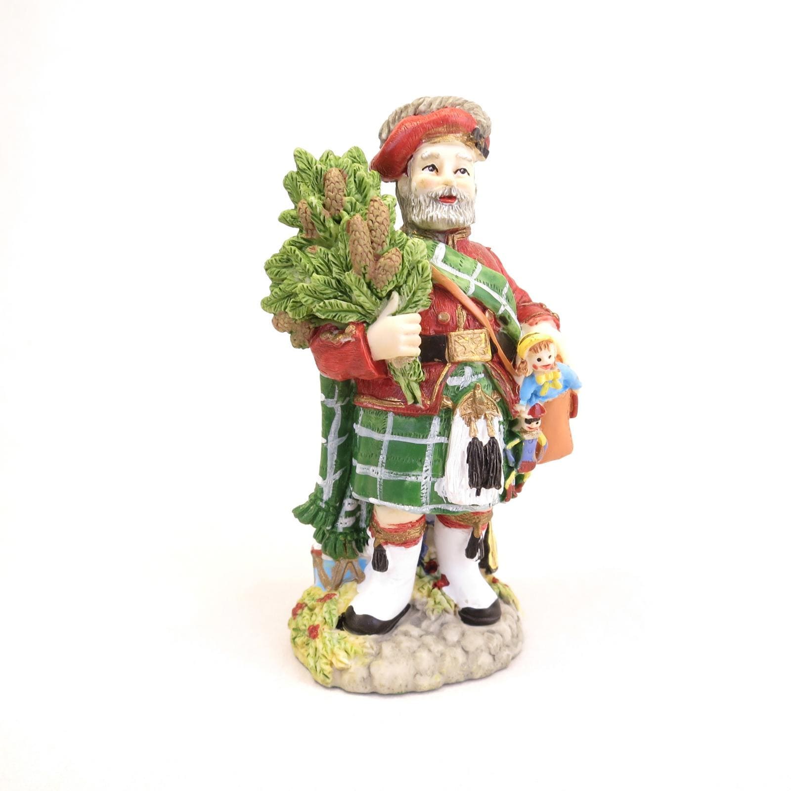This charming Santa figurine measures 4.75" tall and is in good overall condition. It's made of hand painted resin with a maker mark on the bottom. Includes box.