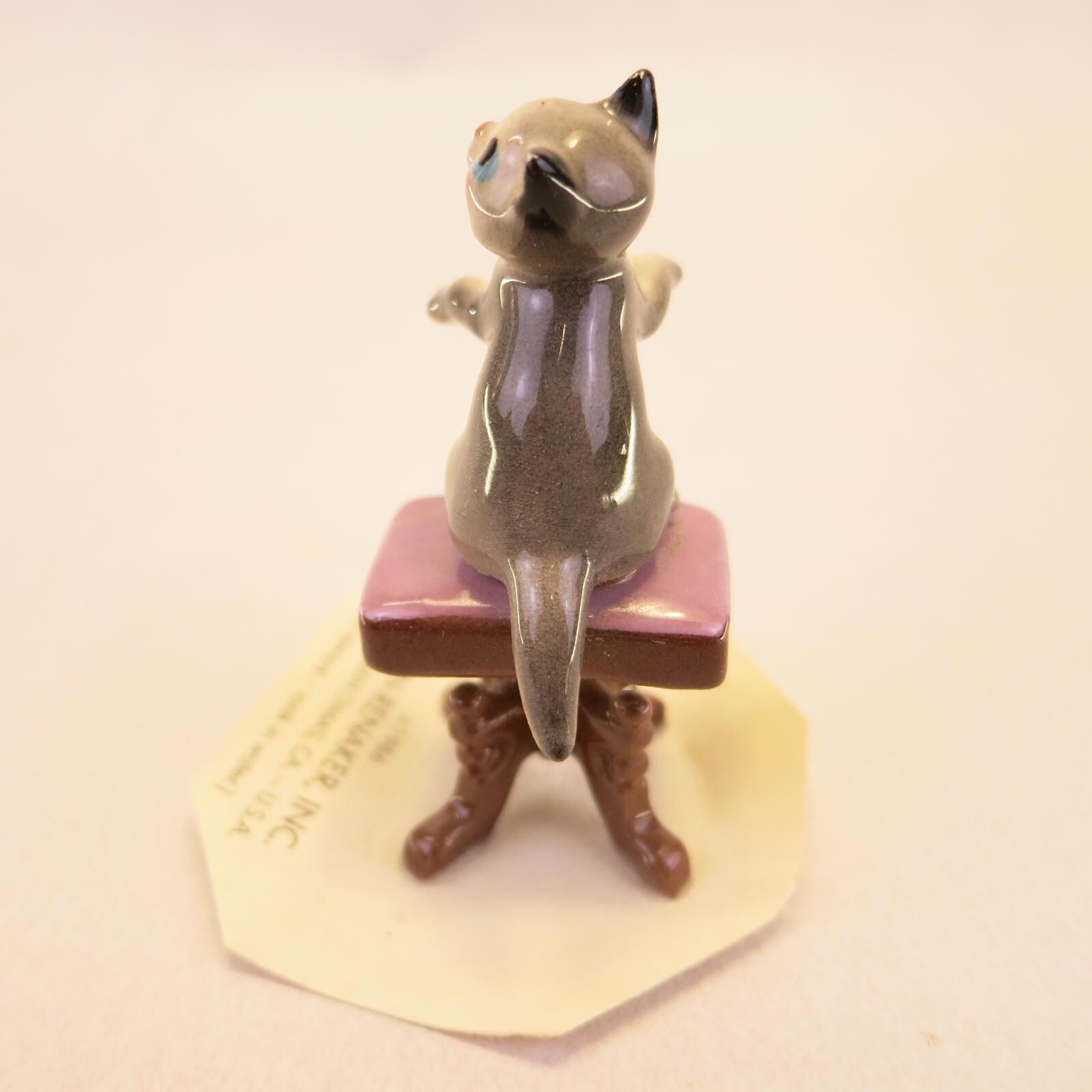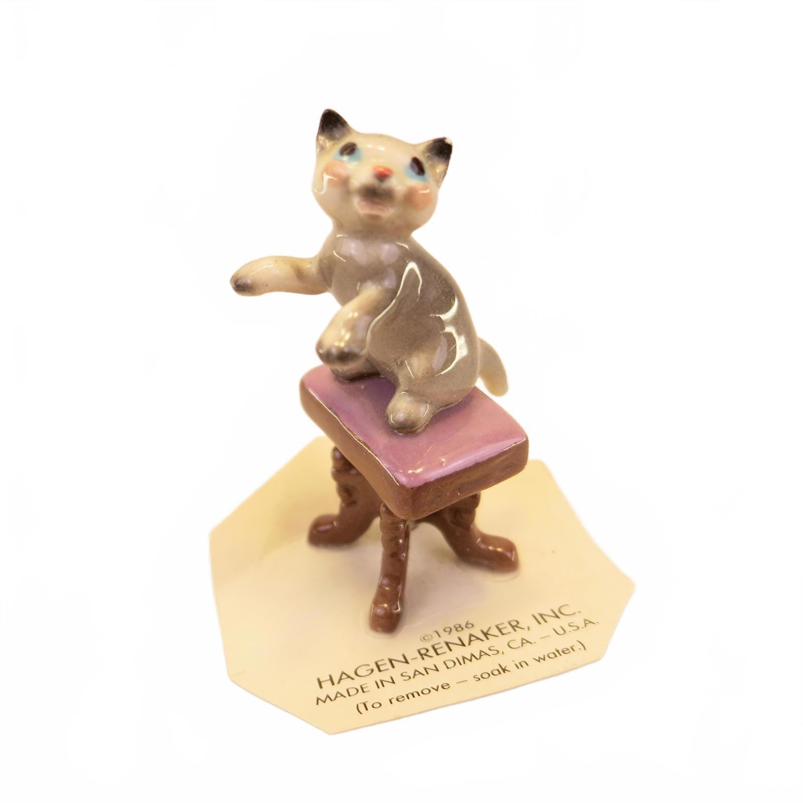 Retired Hagen Renaker Cat on Piano Stool Grey in great condition and about 2 1/4 inches tall.