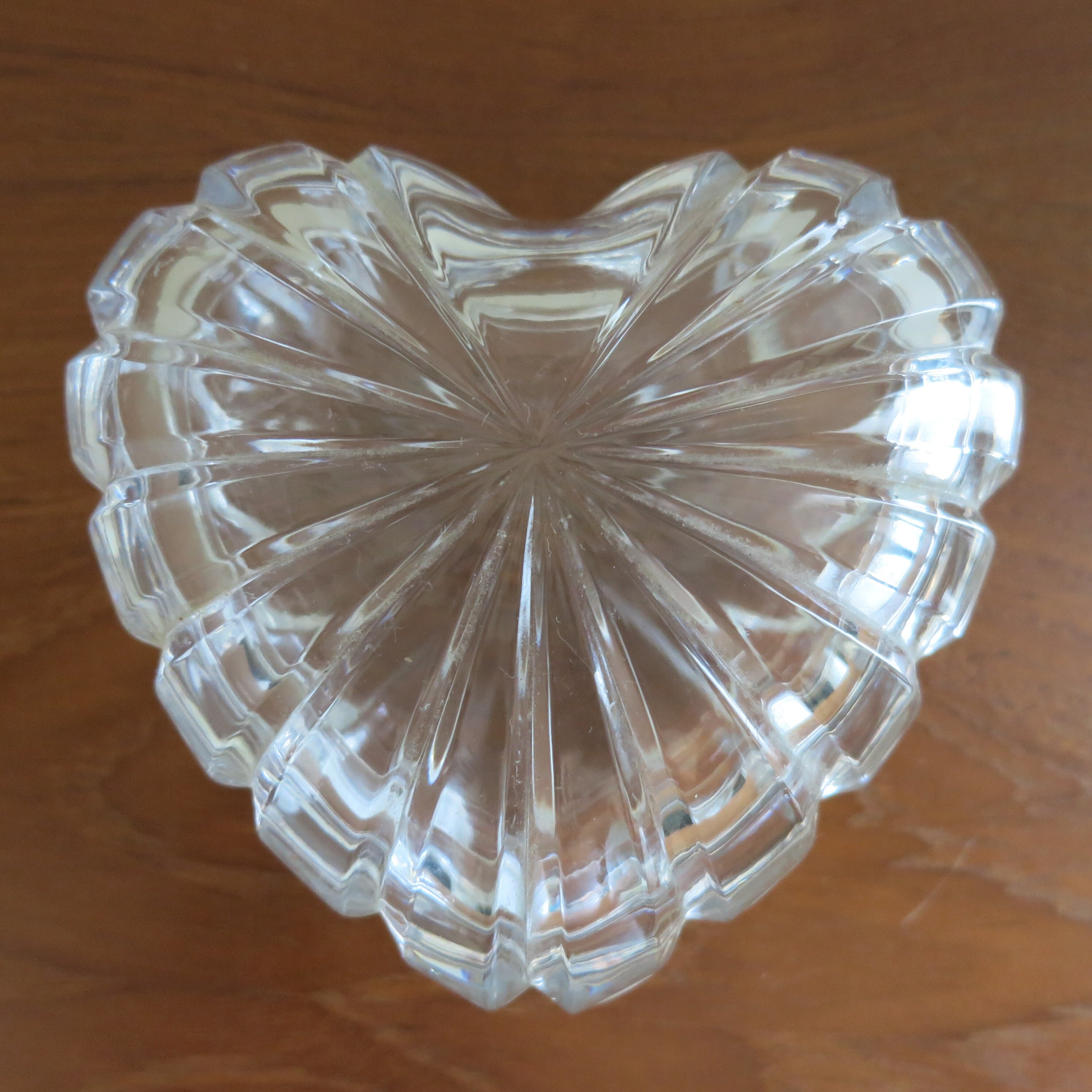 This stunning little jewelry box is in the shape of a heart and in fabulous condition. 4" across & 2" tall.
