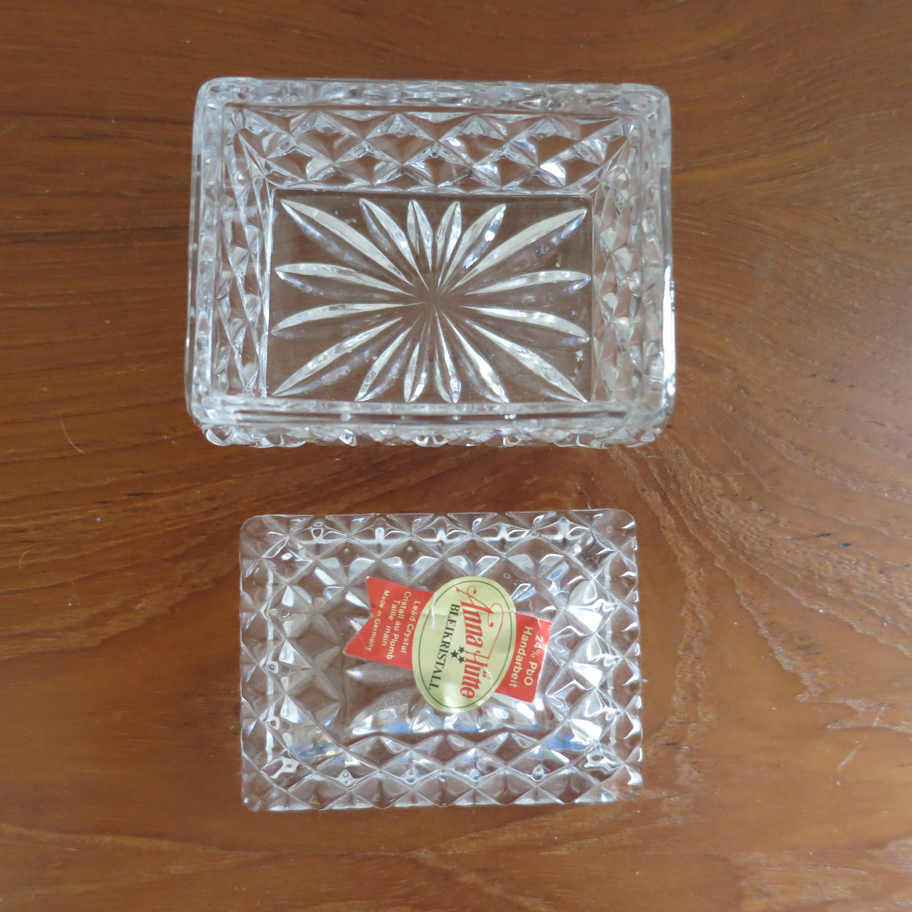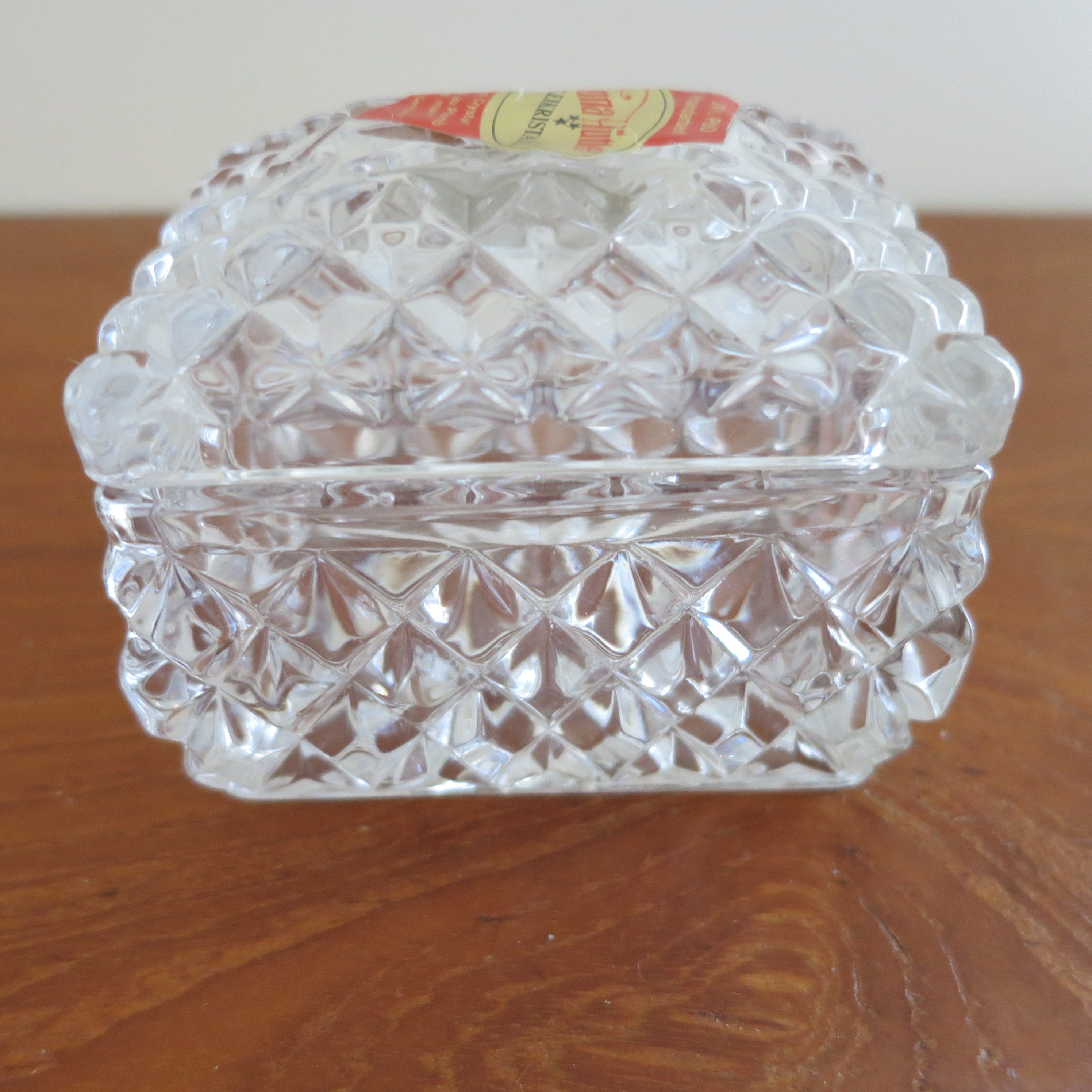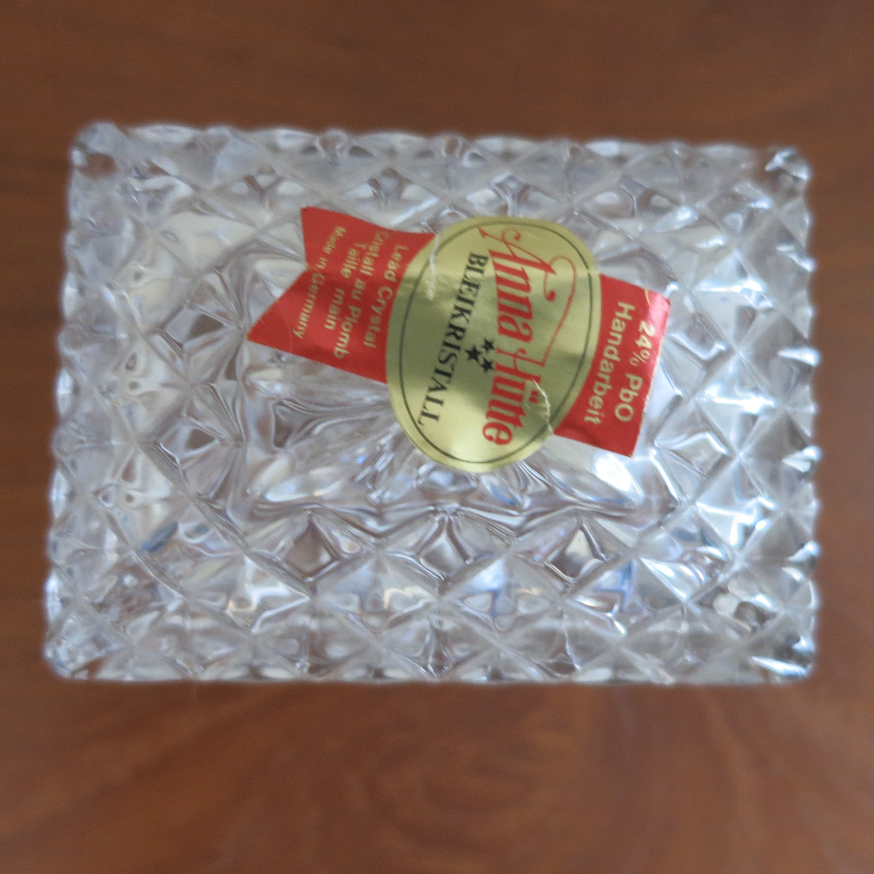 This is one of the quality pieces made by the Anna Hutte Company. In perfect condition with sticker. Measures 2 3/8" long by 2" wide by 2 1/4" tall
