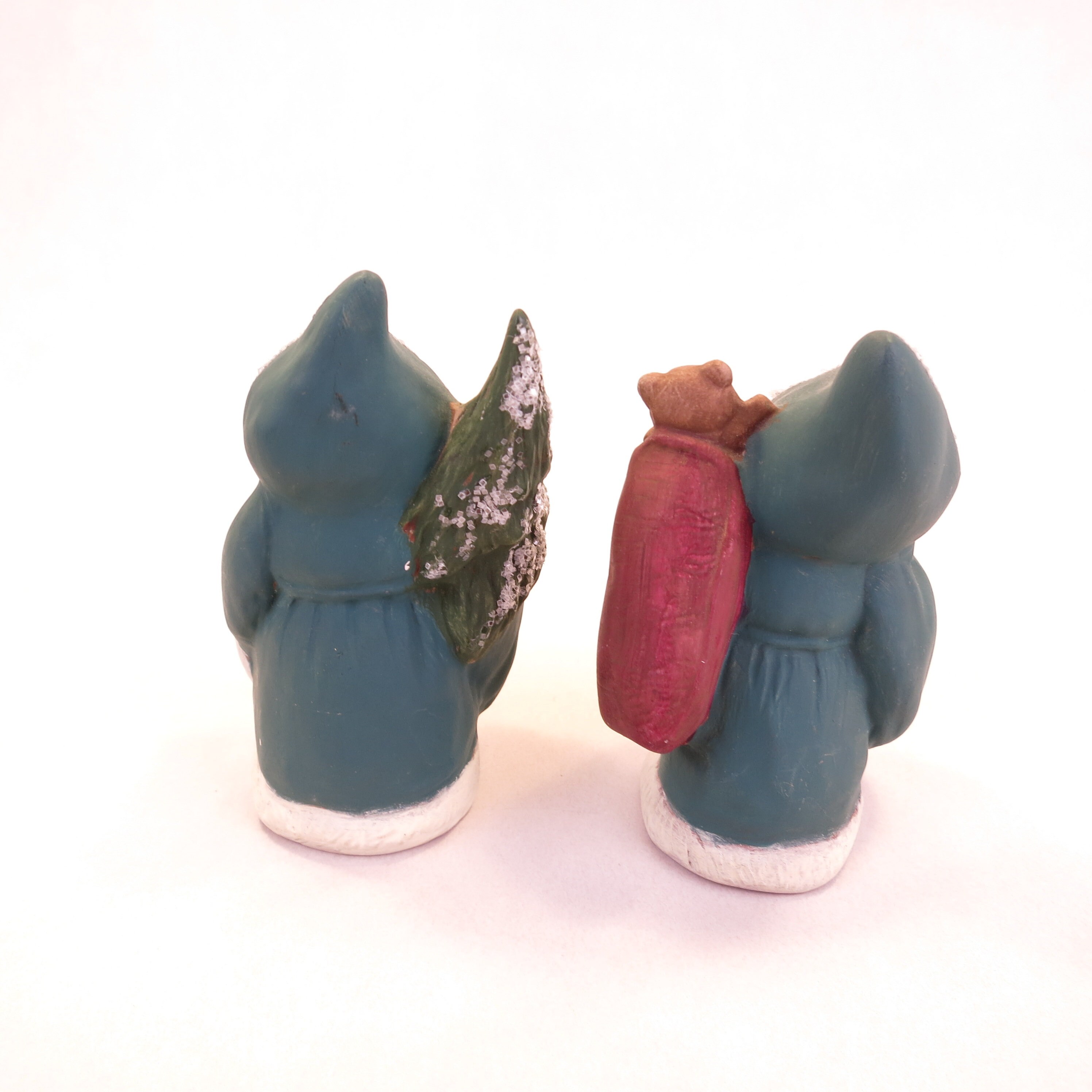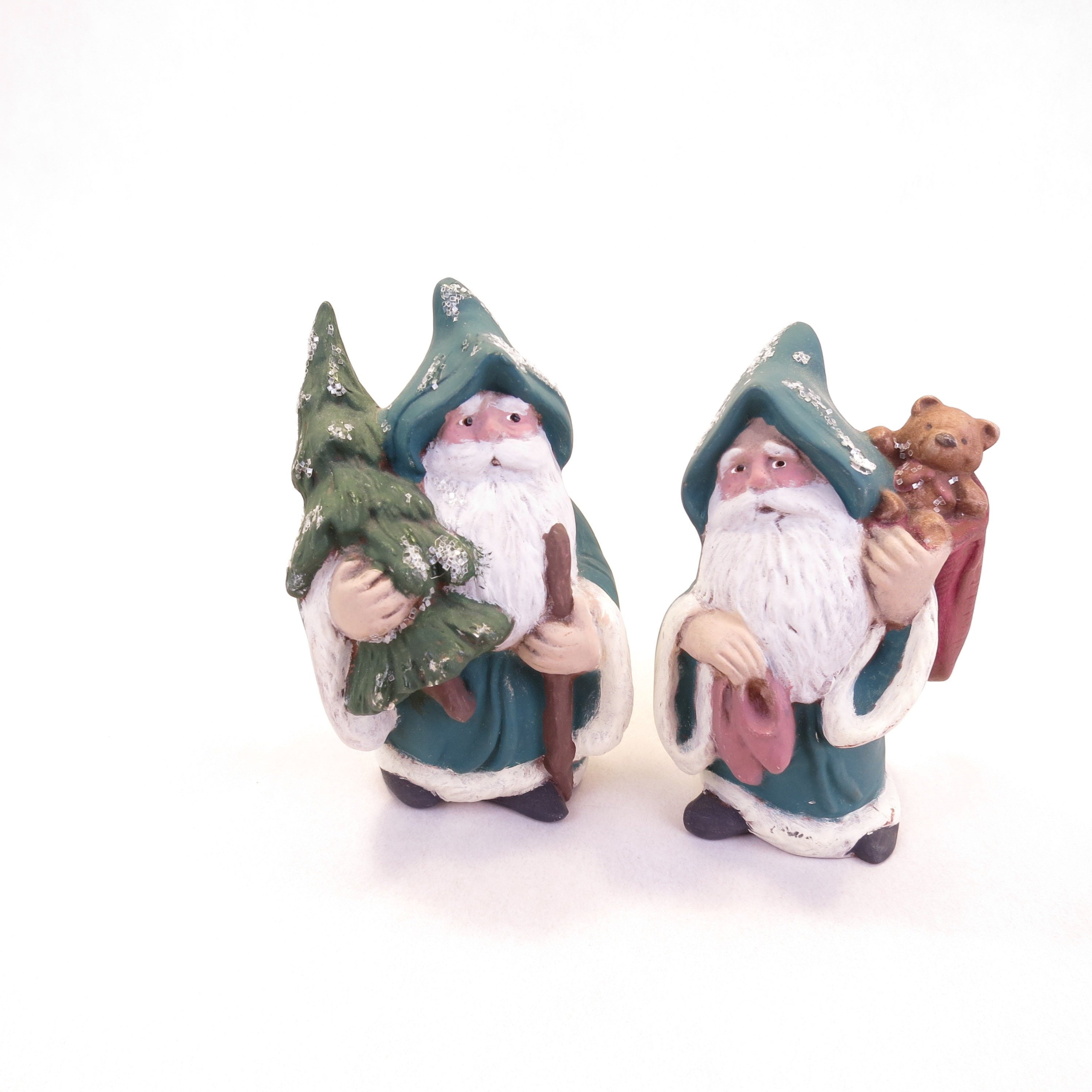 These charming Santa figurines measure 4.5" & 4.25" tall and are in great overall condition. Each is made of hand painted hollow ceramics with clear glitter.