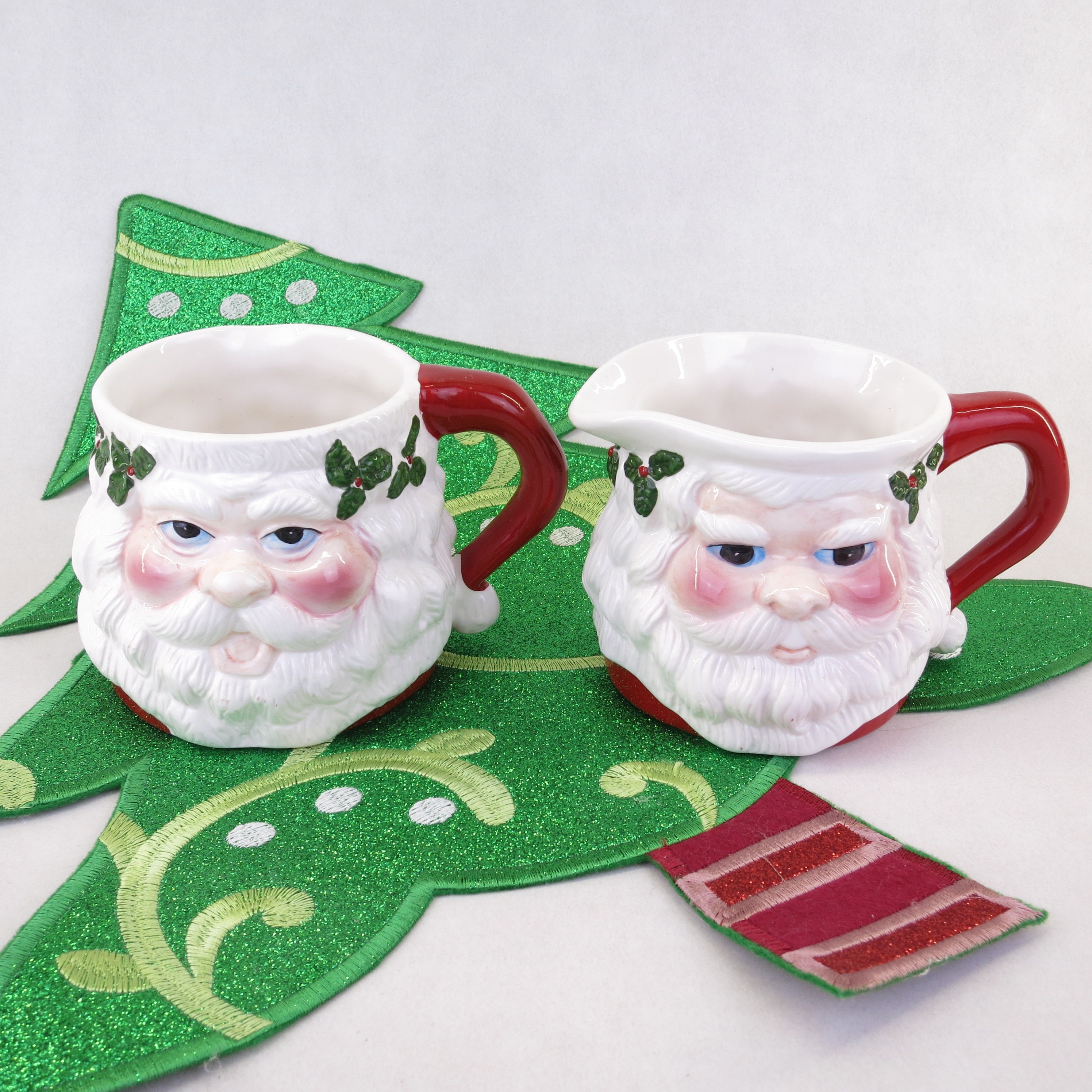 Merry Christmas Santa ceramic sugar/mug and creamer from 1991. In great vintage condition.