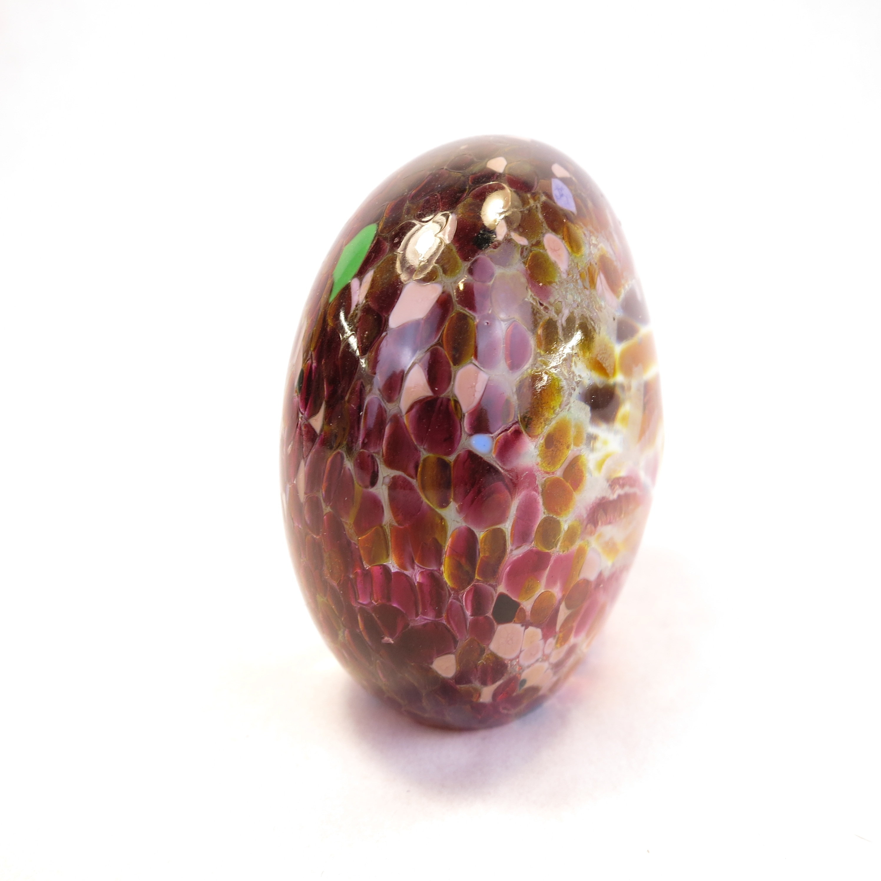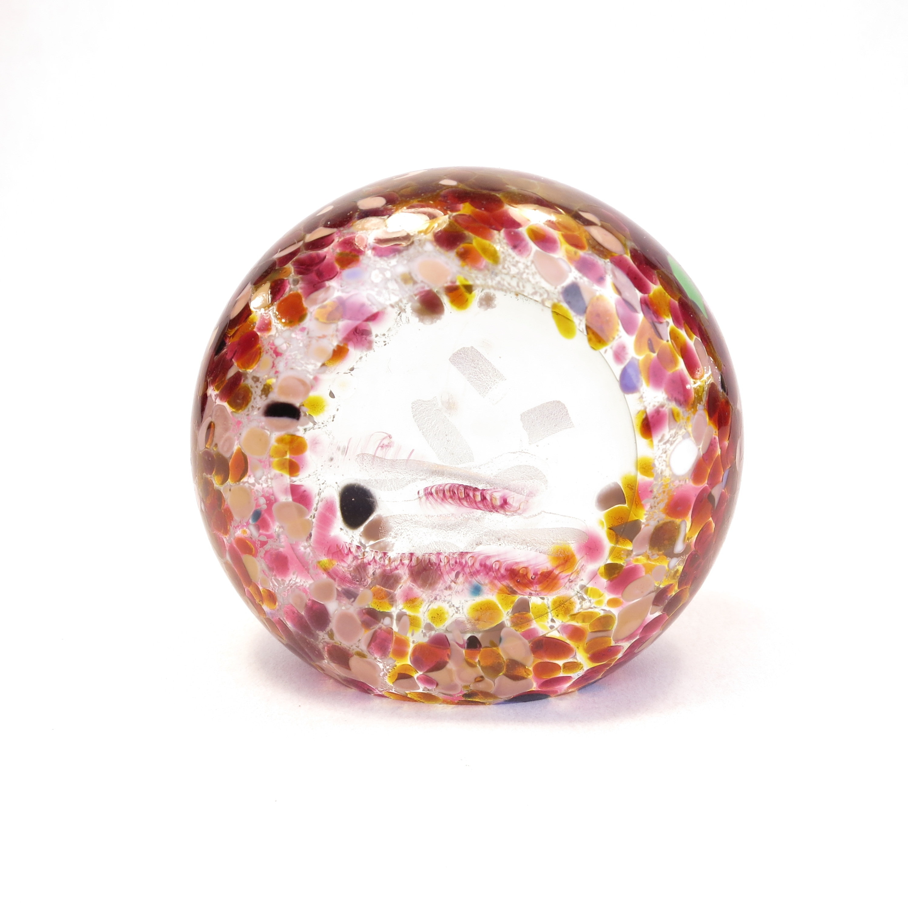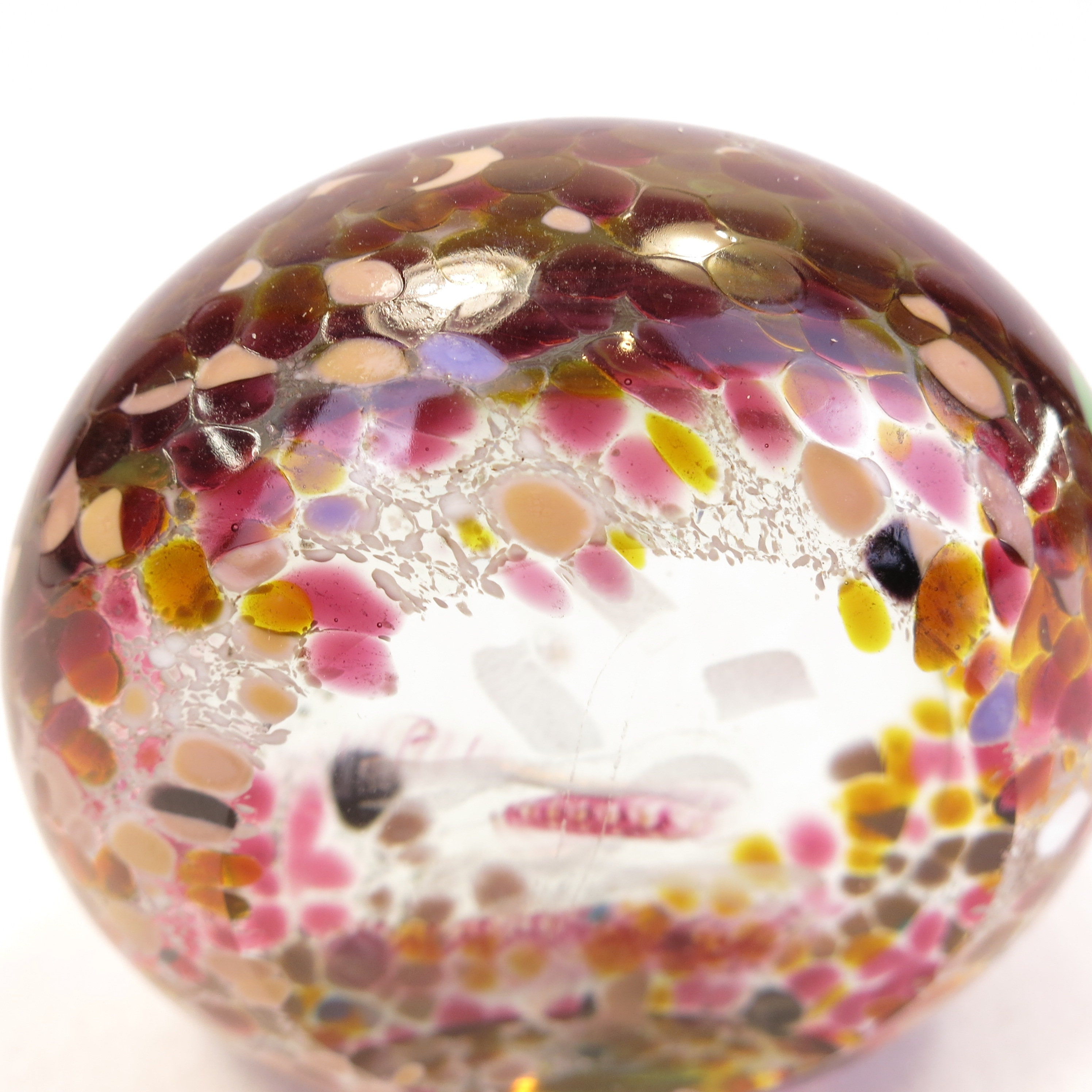Absolutely stunning artist made paperweight. I picked this up at a St. Louis art fair in the 1990's. It's in fine condition with layered glass and a beveled front. Smooth polished base, beveled area has 2 long scratches. 3" tall, 3.75" wide, 1.75" deep with vivid coloring. Weight 1lb 2 Ounces.