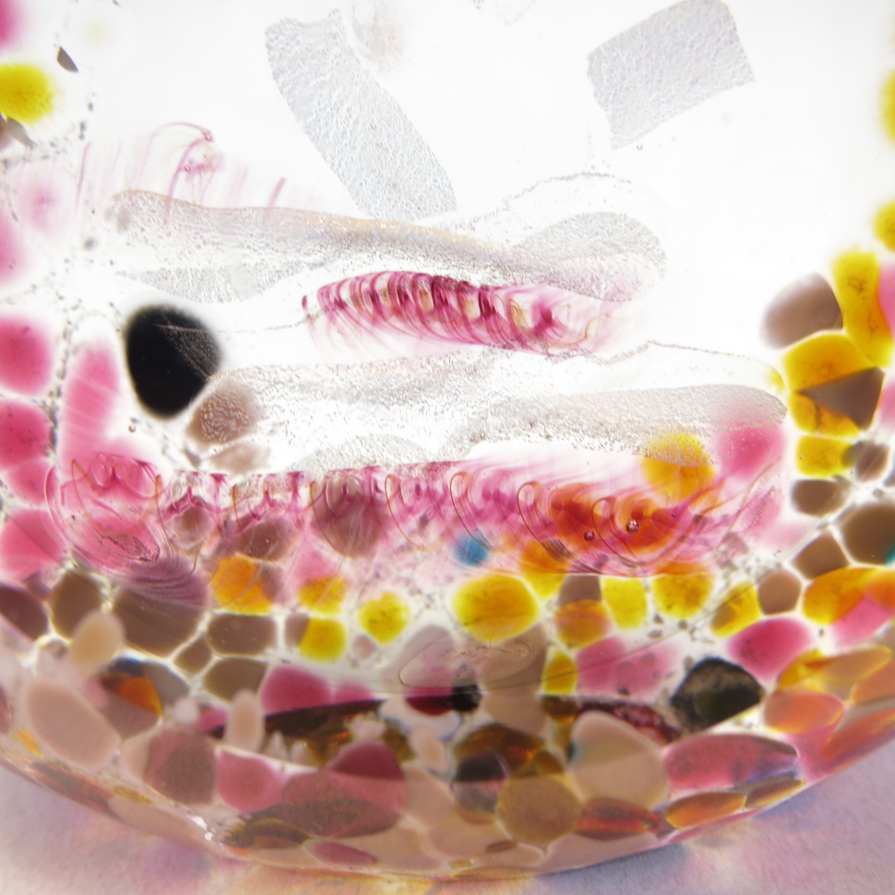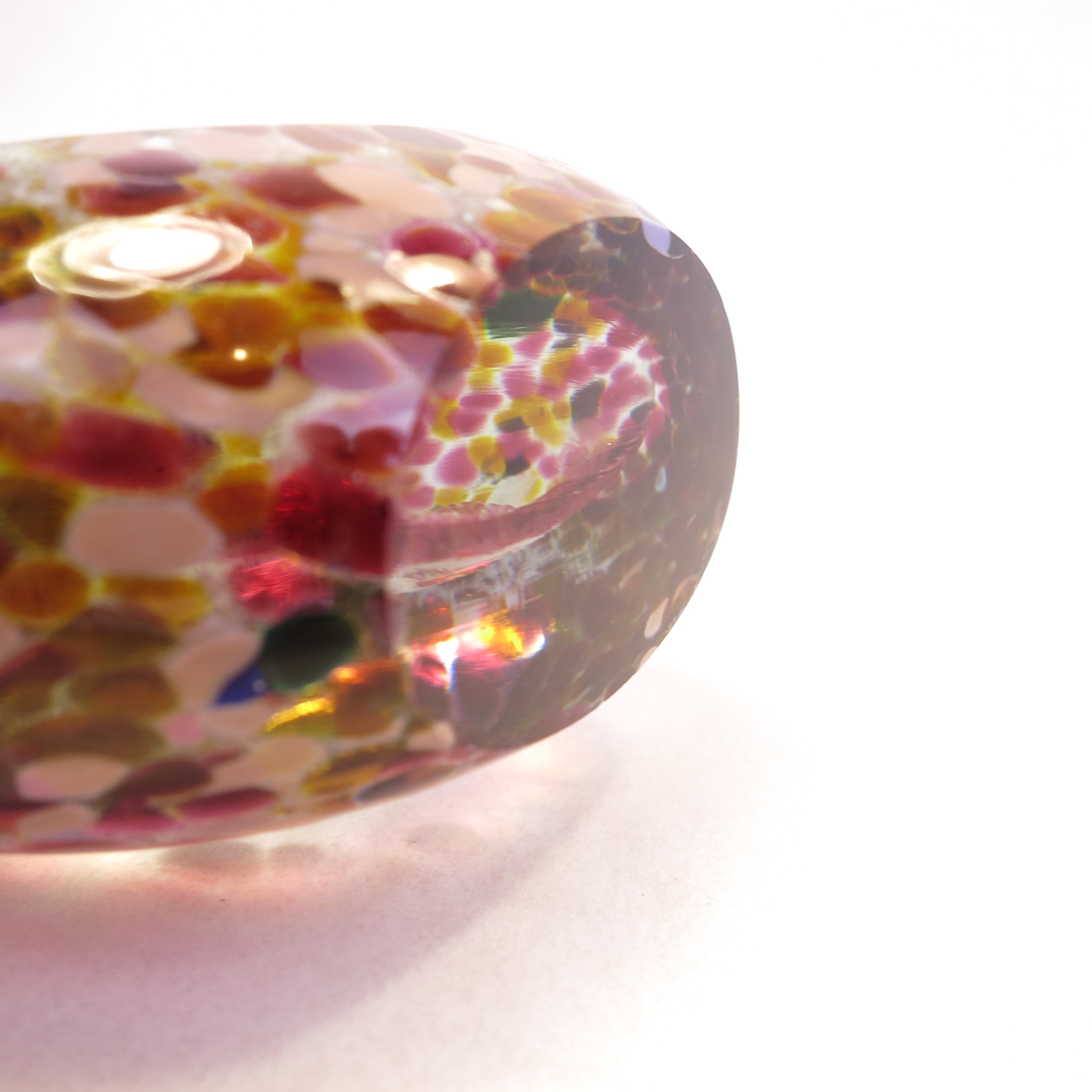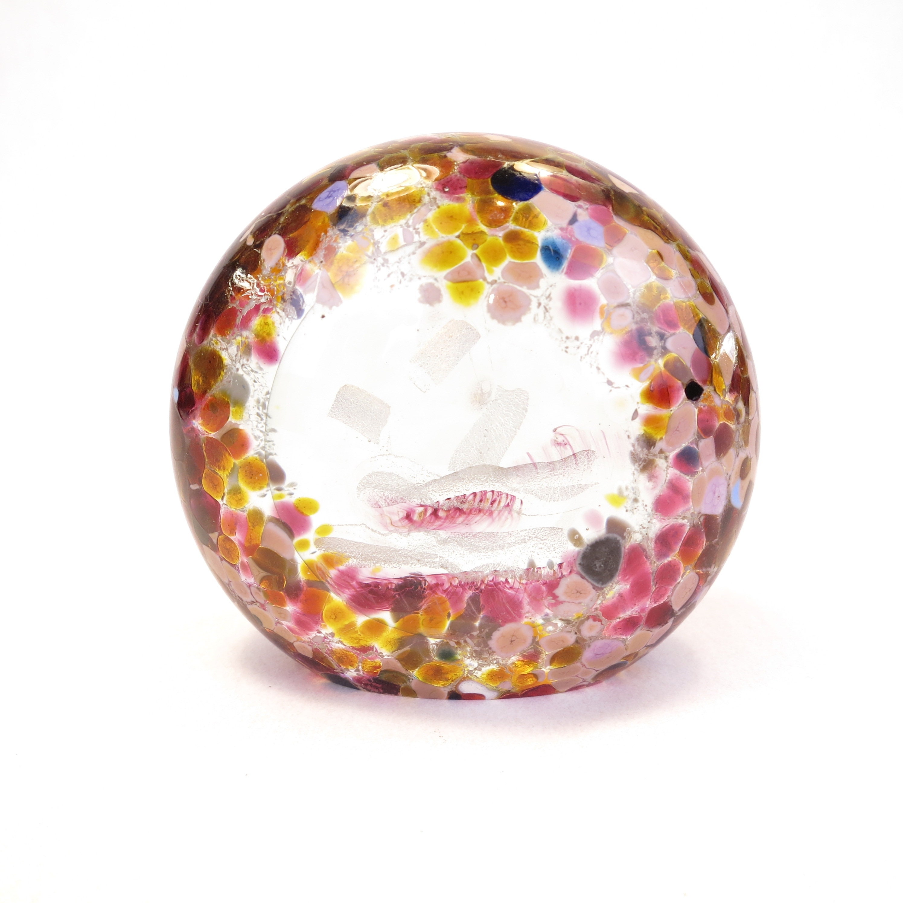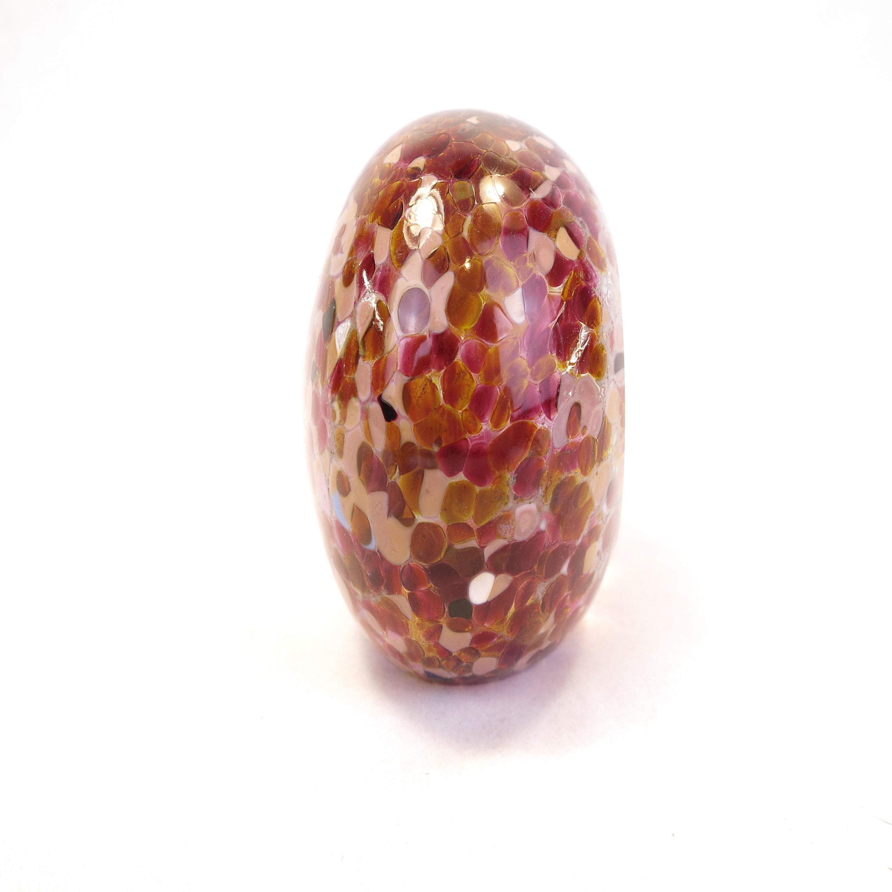 Absolutely stunning artist made paperweight. I picked this up at a St. Louis art fair in the 1990's. It's in fine condition with layered glass and a beveled front. Smooth polished base, beveled area has 2 long scratches. 3" tall, 3.75" wide, 1.75" deep with vivid coloring. Weight 1lb 2 Ounces.