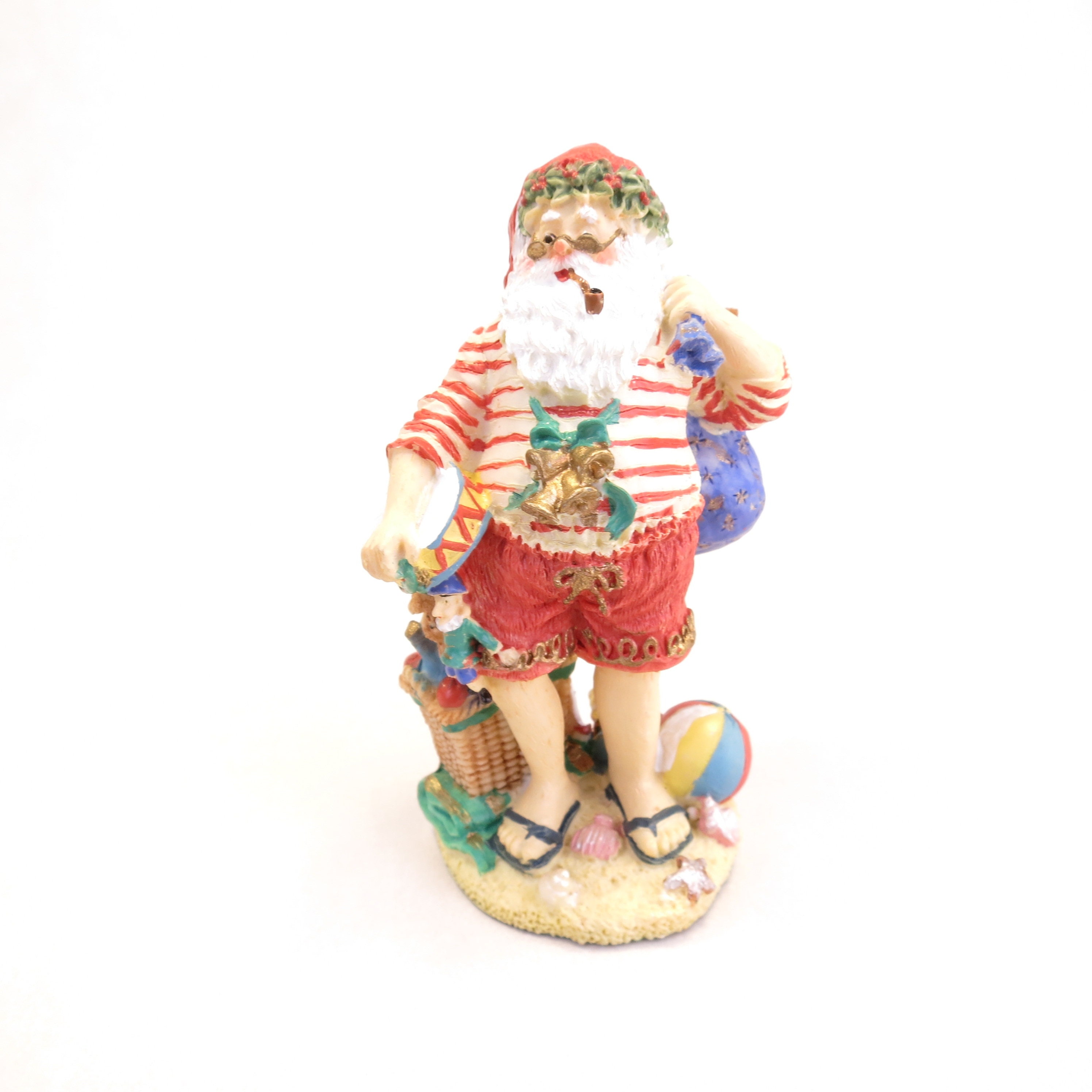 This charming Santa figurine measures 4.6" tall and is in good overall condition. It's made of hand painted resin with a maker mark on the bottom. Includes box.