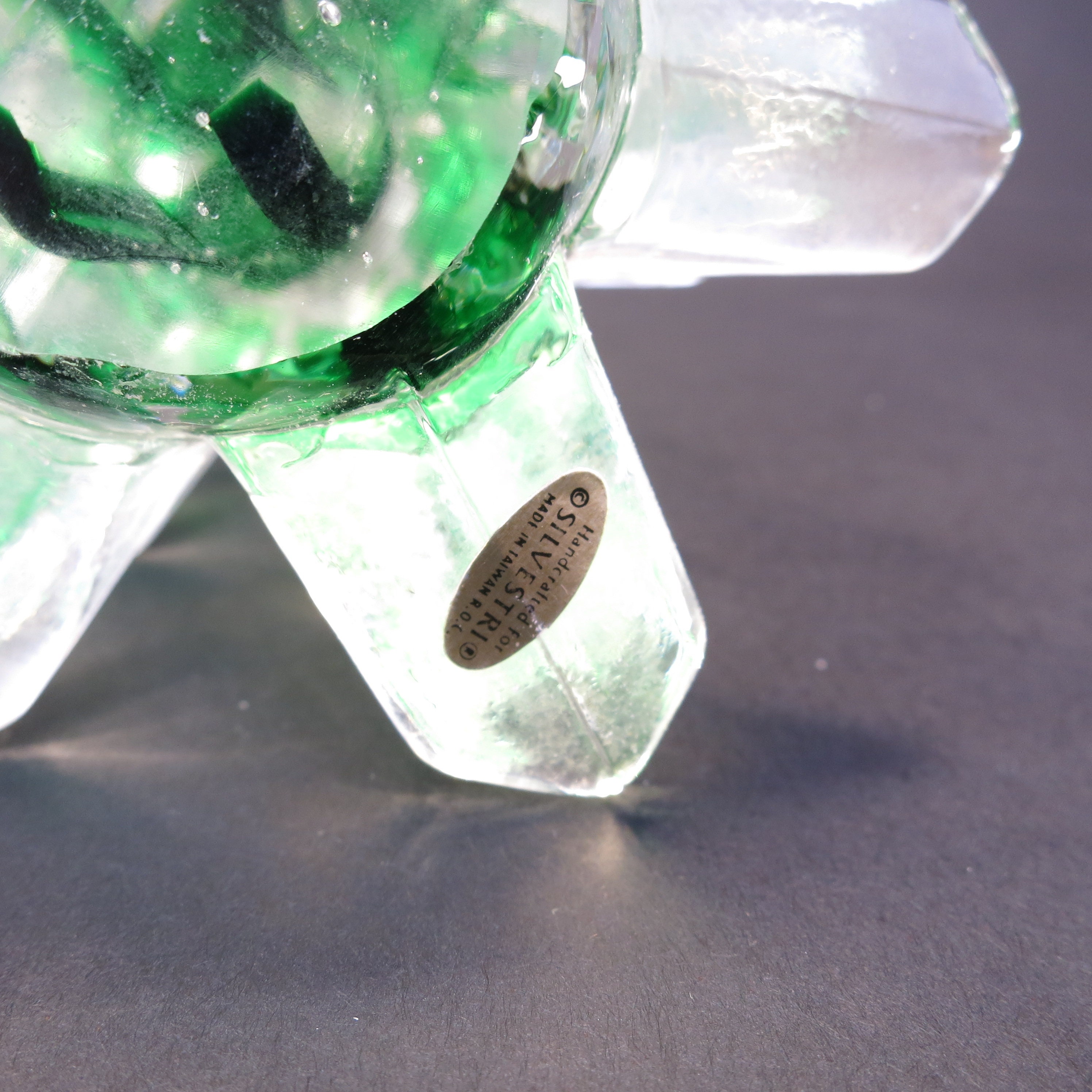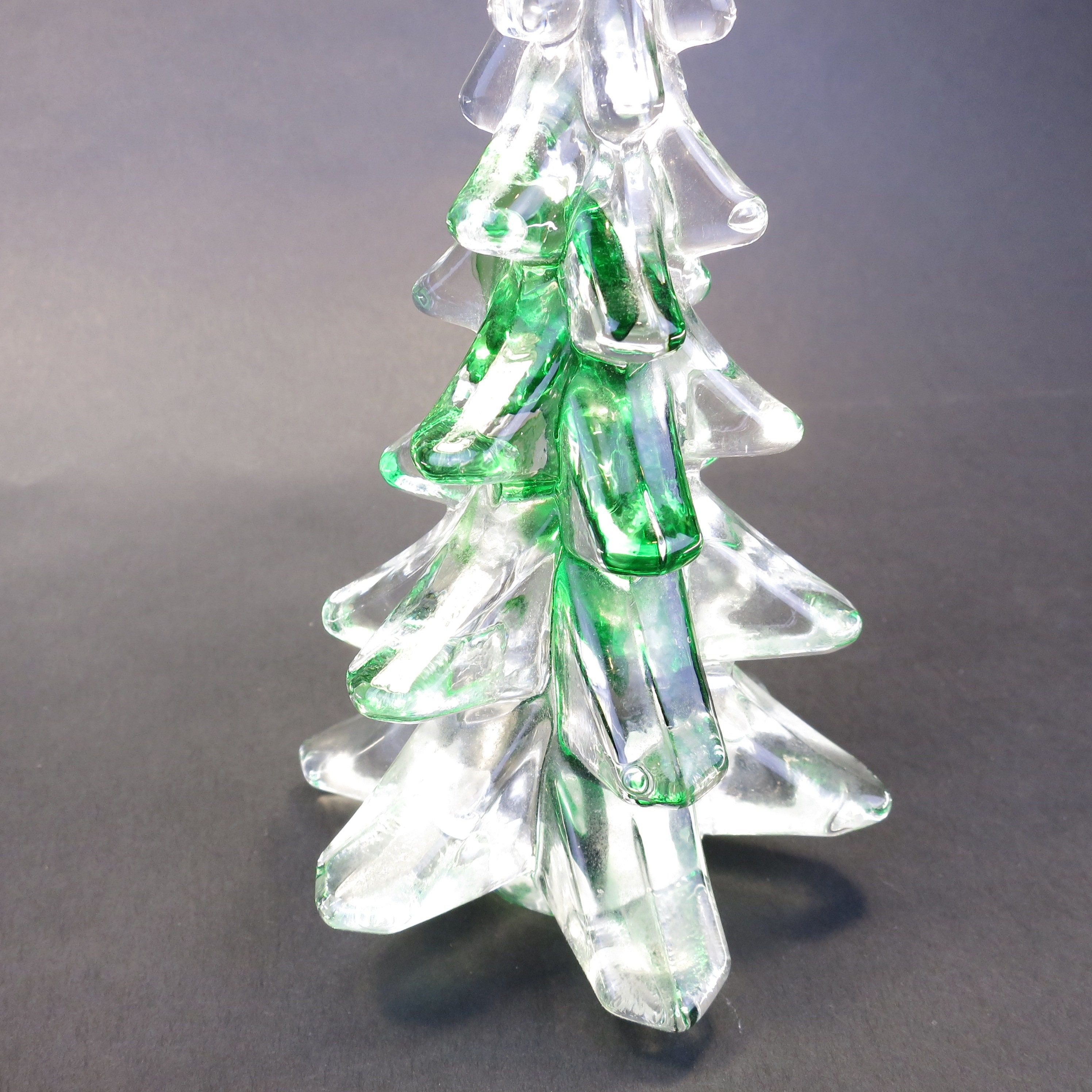 Vintage Silvestri Crystal Pine Christmas Tree Hand Blown Art Glass Clear and Green Crystal Pine Christmas tree. Measures approximately 8" tall. In good overall condition with no visible damage. Sticker attached to the base.