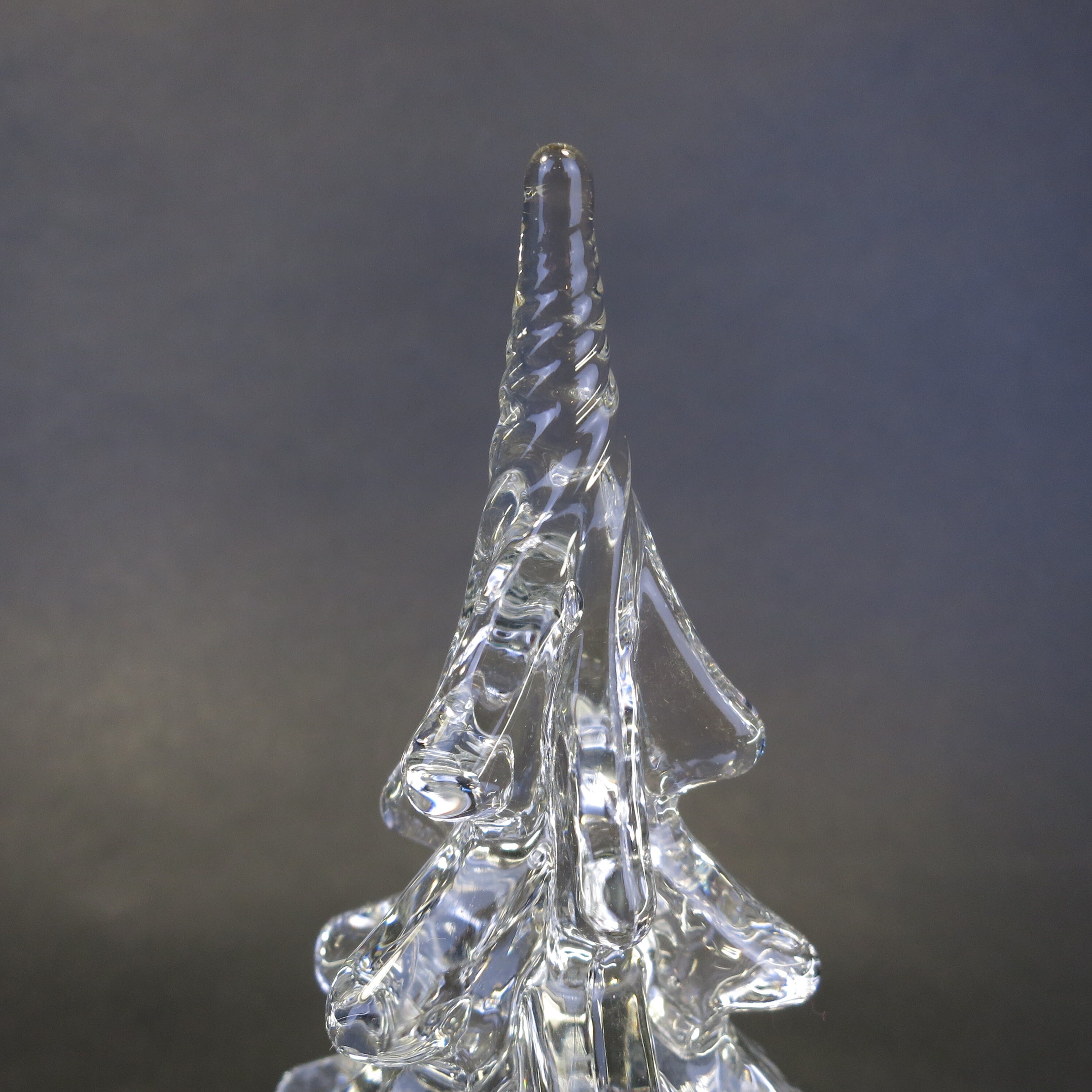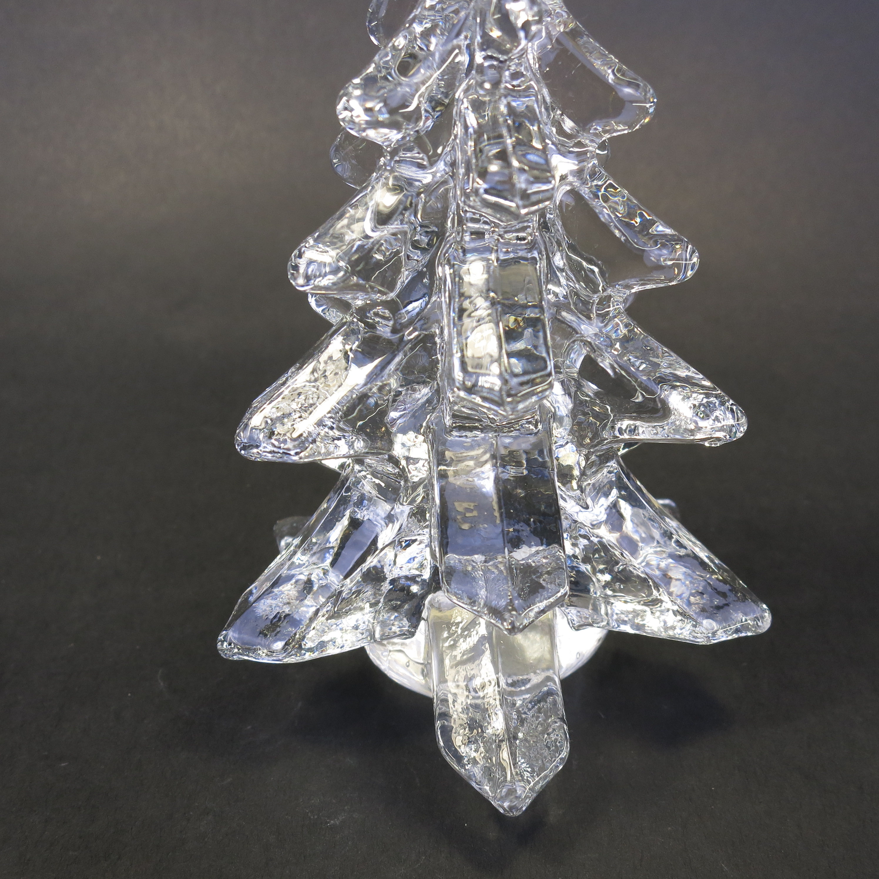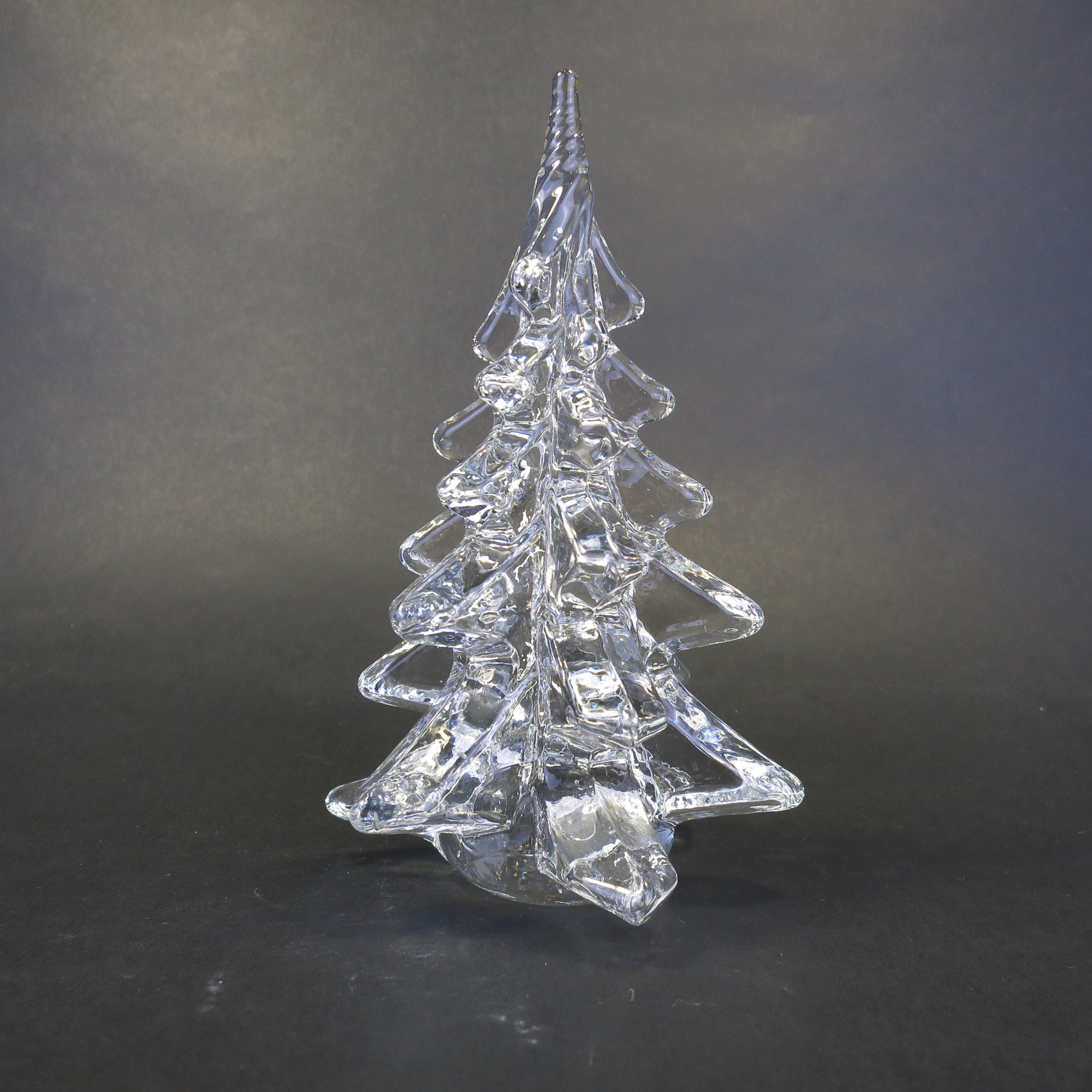 Vintage Silvestri Crystal Pine Christmas Tree Hand Blown Art Glass Clear crystal pine Christmas tree with swirled top. Measures approximately 6" tall. Has original box.